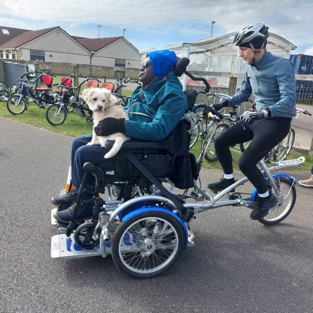 Bike the UK for MS placement student and volunteer Olivia made the early morning journey from Lancaster to support the day, teaming up with MaryClare Faulkner, Inclusive Cycling Lead at Goals Beyond Grass, who had prepared an amazing fleet of adaptive bikes.