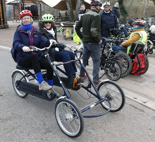 Eleven participants from the Gloucester, Cheltenham and Forest of Dean MS Group, led by volunteer Simon Ruffley, joined us for the ride. The group tried everything from side-by-side tandems and trikes to recumbents, e-bikes, and wheelchair-accessible cycles. Some even brought their own e-trikes!