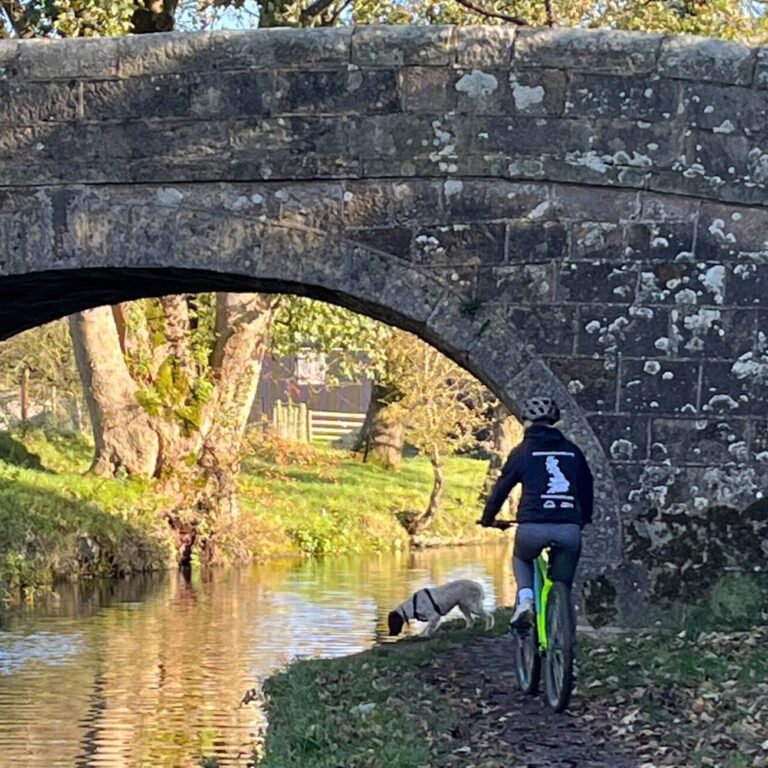 I decided to take advantage of the nice weather and go around the local canal, taking my dog, Dot, along for the ride. The ride started off smoothly, with beautiful views along the canal, and we even spotted a few ducks that Dot was very keen to greet (chase)! However, halfway through our ride, we ran into a bit of an obstacle- building work on the canal blocked our path. Instead of turning back, we took a slight detour to get around the disruption and complete our loop.